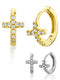 925 Sterling Silver Cross Goldtone Huggie Hoop Earrings Round CZ 6.5MM