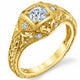 Elevate your love story with the timeless elegance of our Vintage-Inspired Moissanite Bridal Ring. Expertly crafted to capture the romantic essence of the Art Deco era, this stunning piece features a 1-carat total weight (1ct TW) of brilliant moissanite. The center stone is perfectly balanced by a unique square-halo 4-prong setting and a band rich with intricate detail.