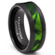Make a bold statement with this striking Black Tungsten Carbide Ring, the perfect wedding band or statement accessory for men. This exceptional ring features a sleek, flat-top design accented by high-polish beveled edges. The centerpiece is a unique lacquered, dyed Green Mother of Pearl inlay that catches the light with a vibrant, natural shimmer.