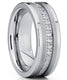 Say " I do" with this Silver-tone high polish matte finish men's tungsten wedding band. This eternity ring is both masculine and sophisticated with clear prong-set Cubic Zirconia stones around.